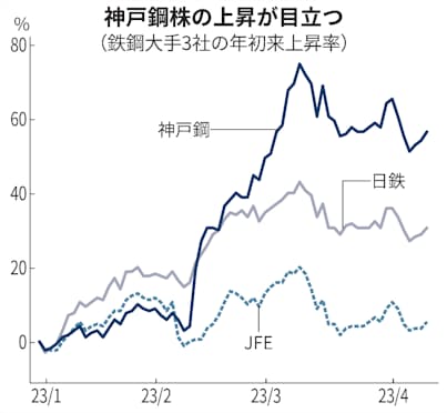 株価も最大手の日本製鉄の上昇率をしのぐことが書かれています。