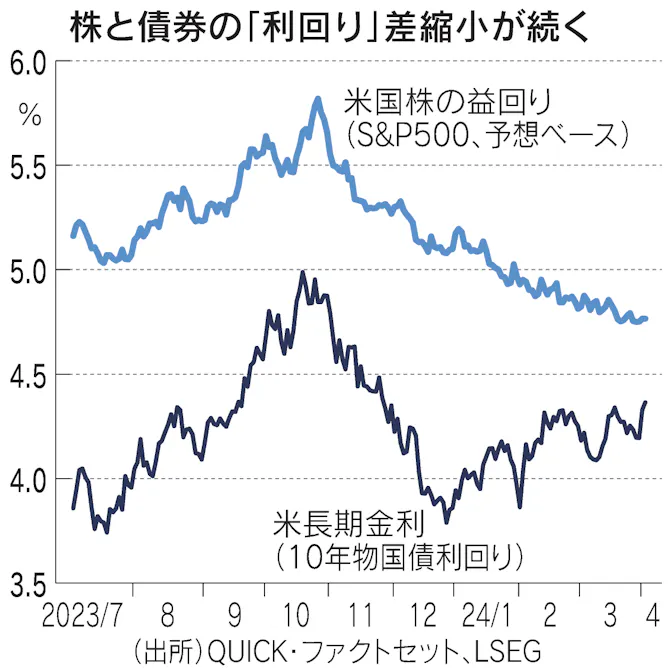 金利が高止まりする中、株式が上昇に転じるためには、金利上昇以上のEPSの上昇で、益回りが上昇することが必要です。