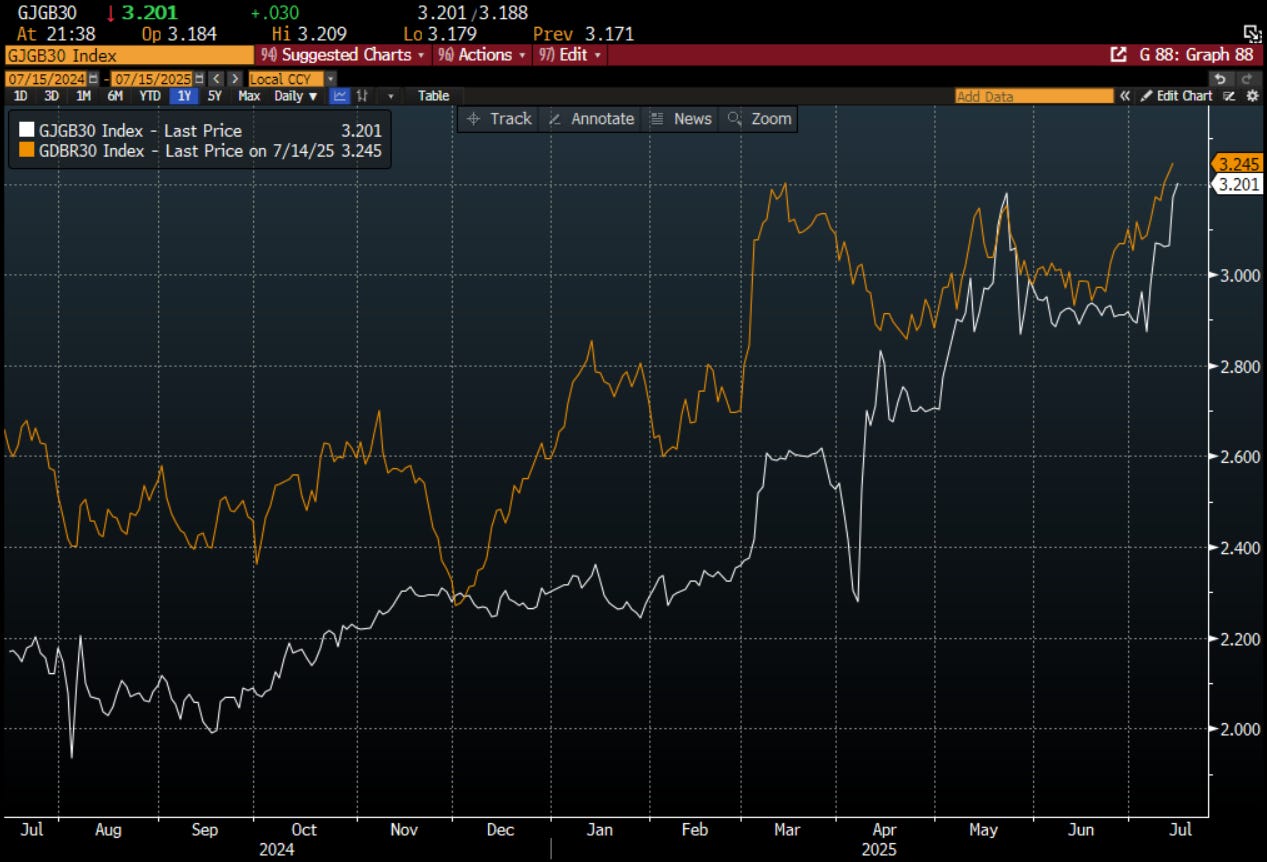 これを受けて、野党が支持する減税国債増発で財政規律が緩む懸念が台頭し、国債利回りが急上昇しています。